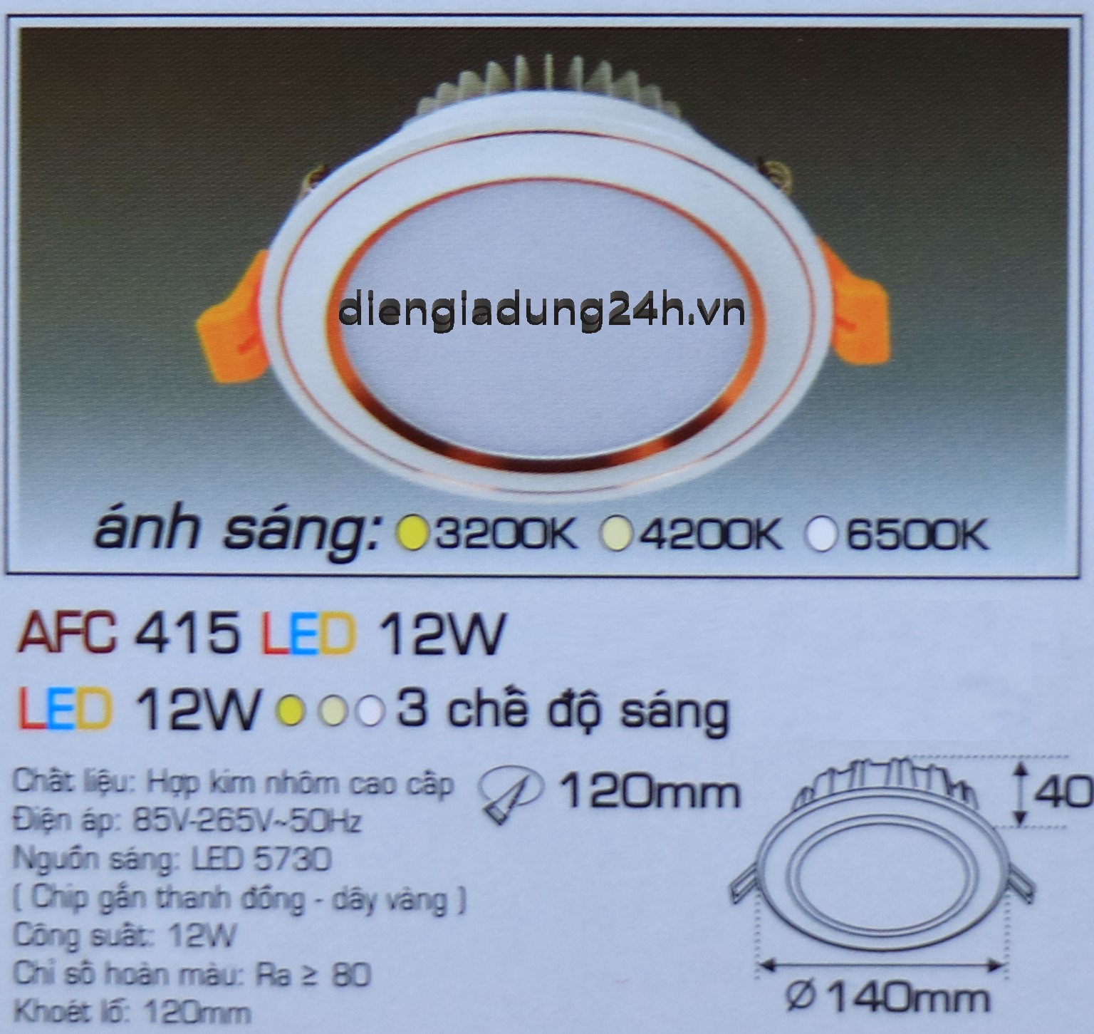 | Mã số | : | AFC 415 LED 12W |