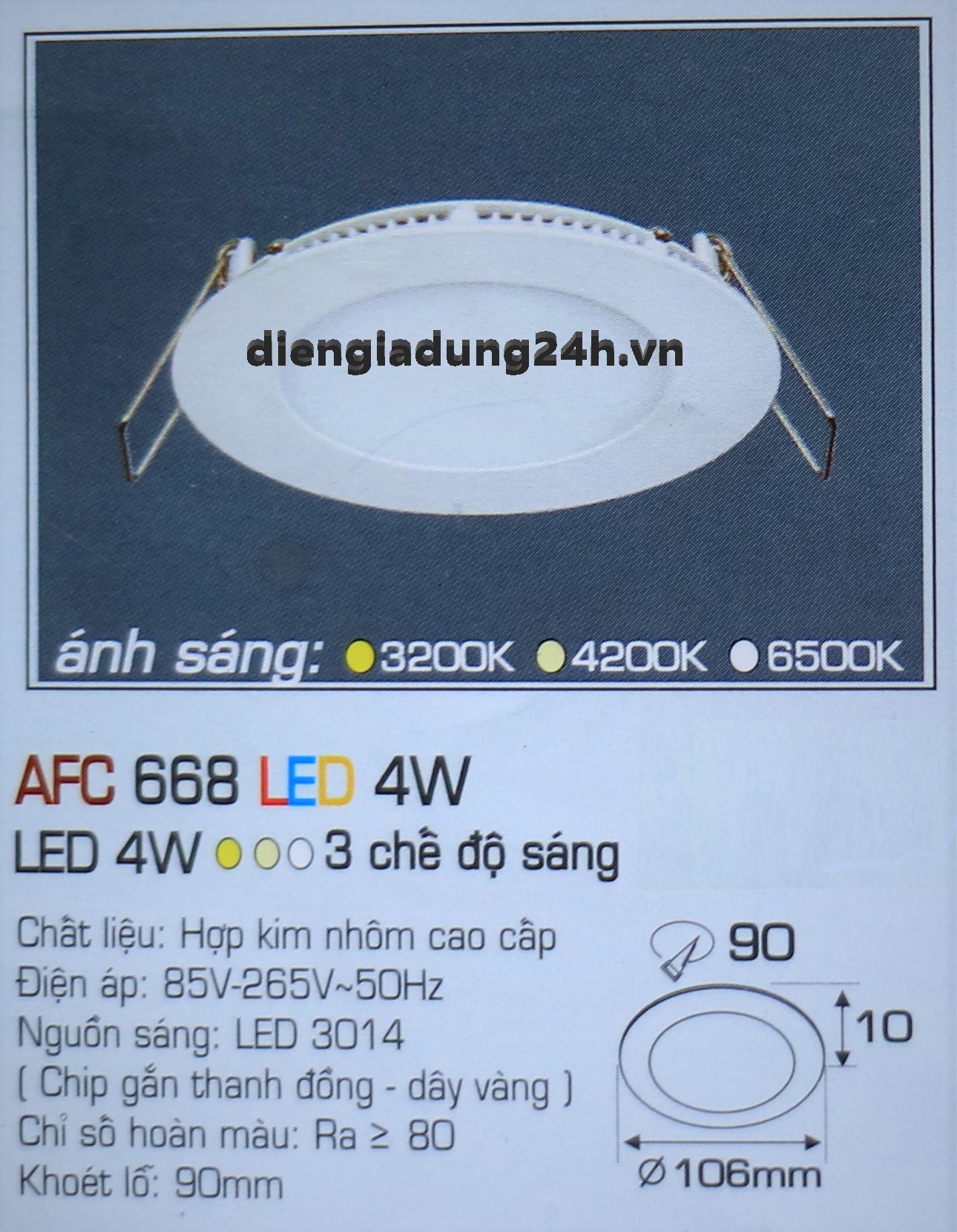 | Mã số | : | AFC 668 LED 4W |