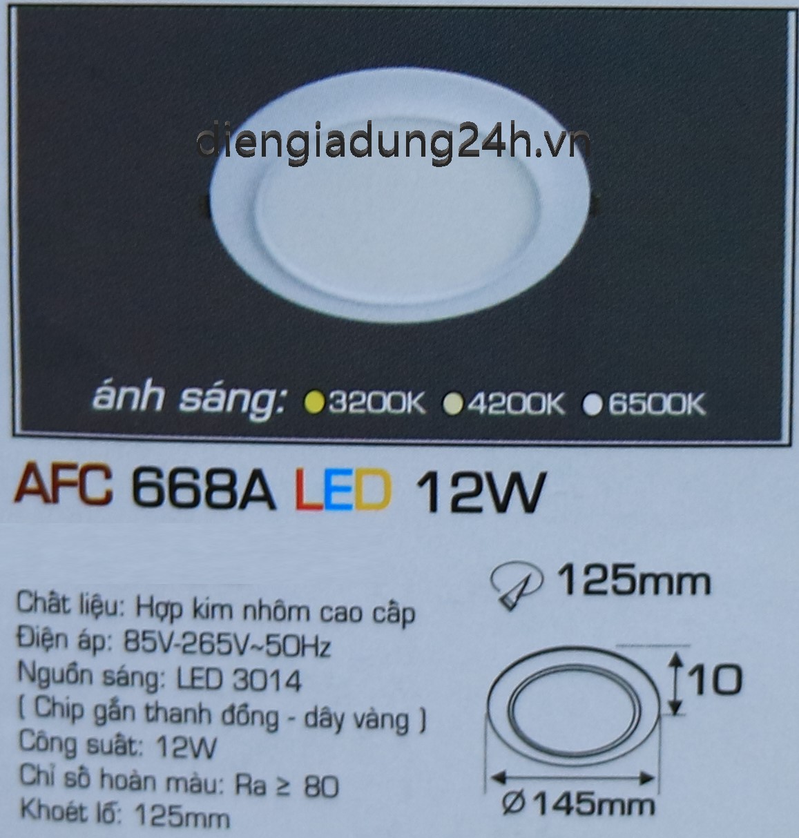 | Mã số | : | AFC 668A LED 12W |