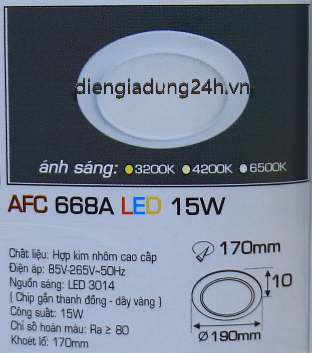 Kích thước: Ø 190 x H 10 mm, Khoét lỗ: Ø 170 mm