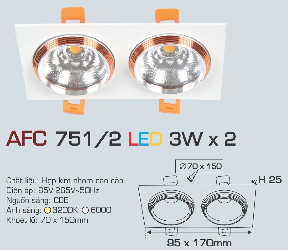 Thương hiệu: Anfaco | AFC 751/2 LED 3WX2, anfaco, led downlight, LED nổi cao cấp,