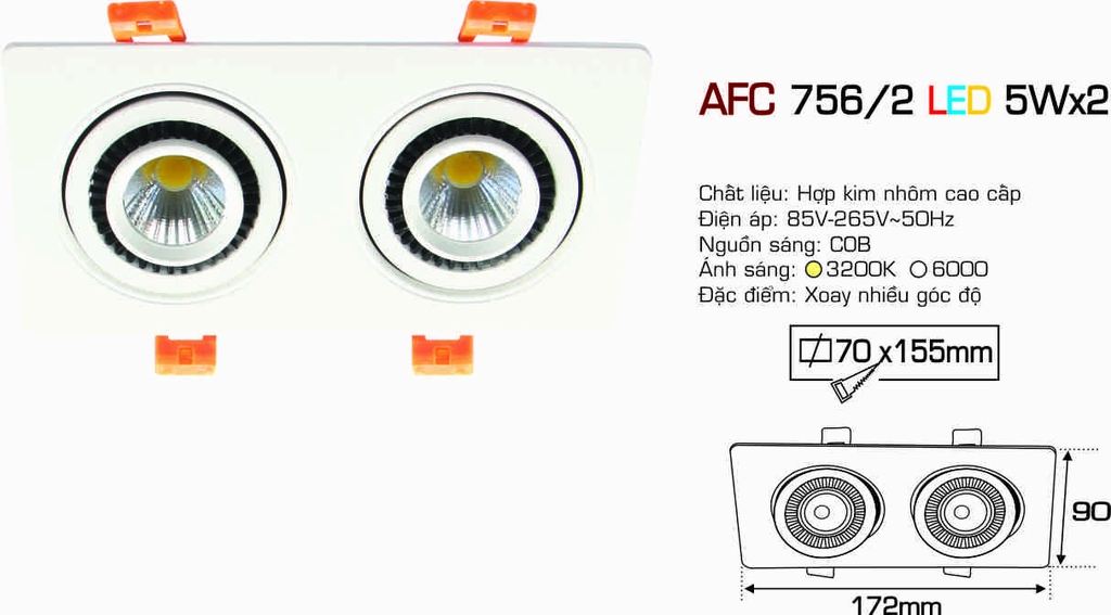 Thương hiệu: Anfaco | AFC 756/2 LED 5WX2, anfaco, chiếu sáng, led downlight, LED nổi cao cấp,