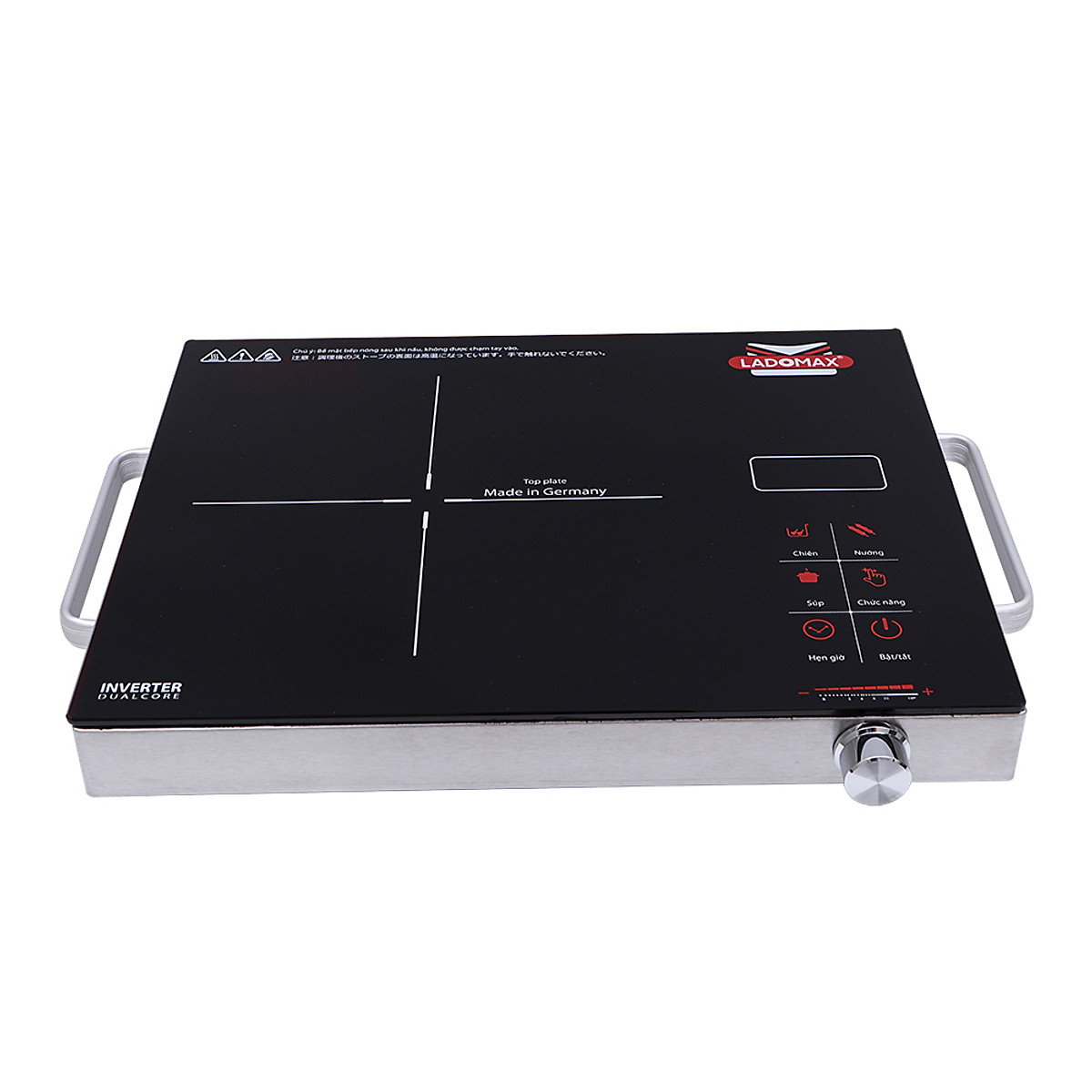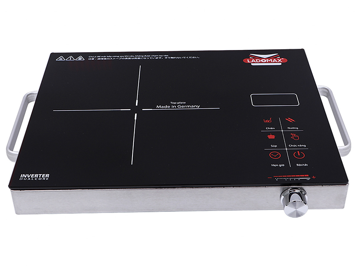 - Bếp hồng ngoại LADOMAX không hề kén nồi, thích hợp sử dụng với mọi loại chất liệu nồi và có thể nướng trực tiếp trên bếp.