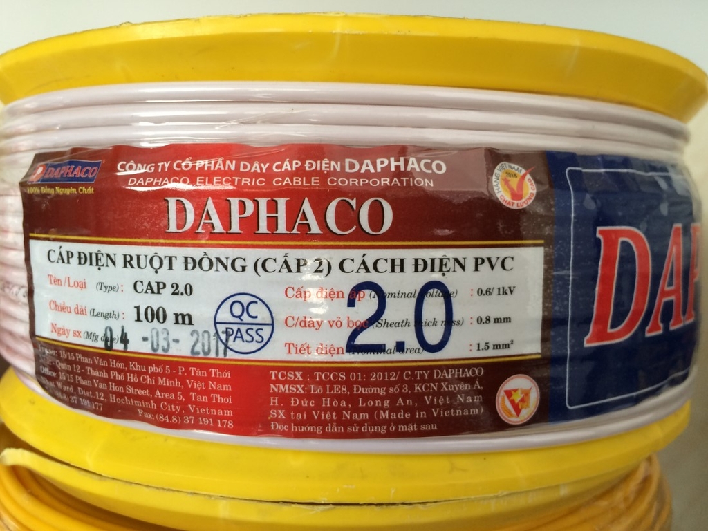 - Chiều dày vỏ bọc 0.8mm, TCSX: TCCS 01:2012/Cty Daphaco