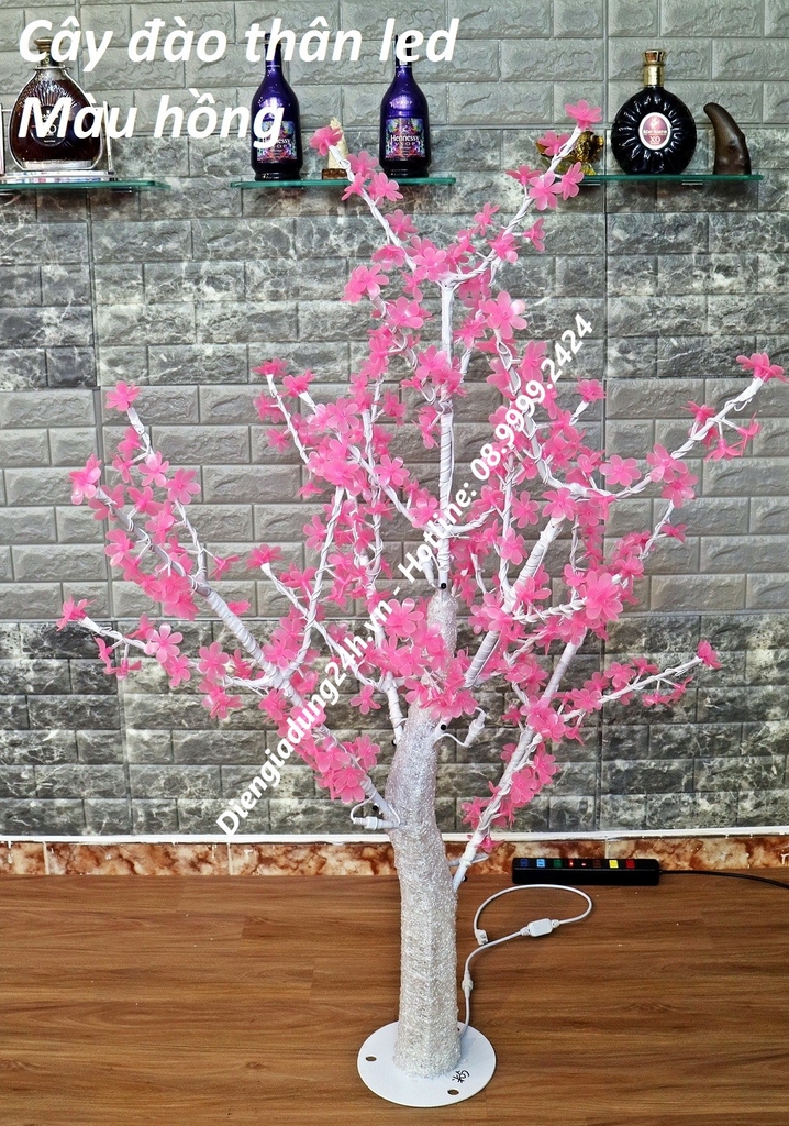 Cây hoa đào LED hồng cao 1,5m, 2m dùng trang trí quán cafe, nhà hàng, khách sạn, quán ăn, chưng tết.