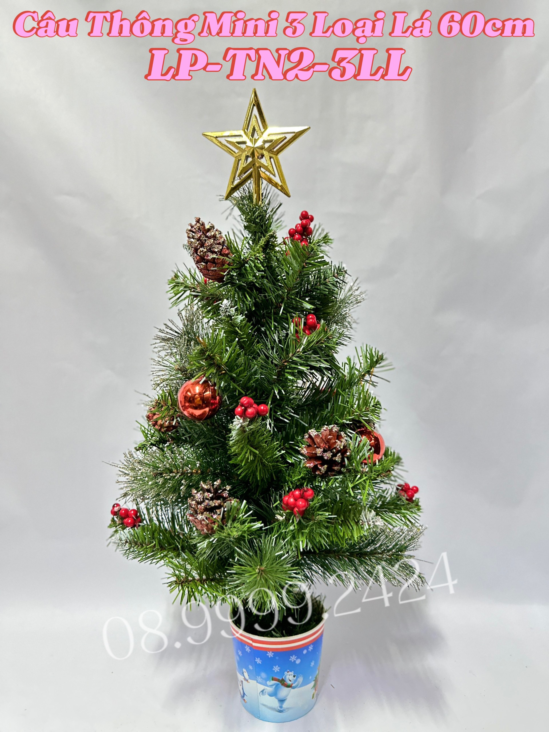CÂY THÔNG MINI TRANG TRÍ NOEL GIÁNG SINH CAO 60 CM CÓ PHỤ KIỆN KÈM THEO TRÊN CÂY