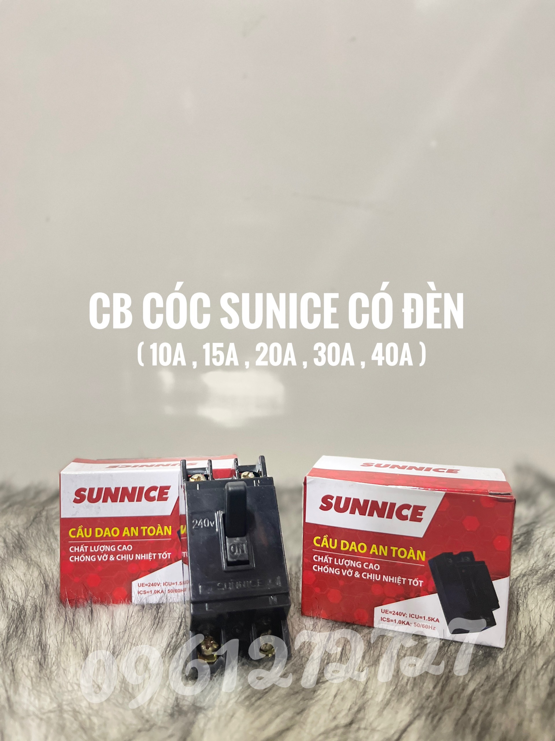 Thương hiệu: Sunnice | APTOMAT CHỐNG GIẬT, CB CÓC SUNNICE MÀU ĐEN CÓ ĐÈN 10A-20A-30A-40A,