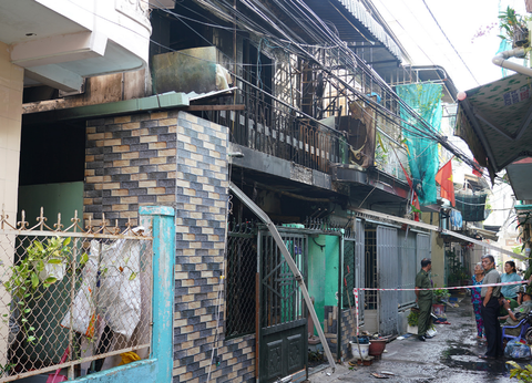 Căn nhà cháy nằm ở hẻm rộng hơn 2 m, cách đường lớn chừng 50 m, tại khu dân cư đông đúc. Nhiều người dân sống bên cạnh đã hỗ trợ dập lửa, cứu người mắc kẹt.
