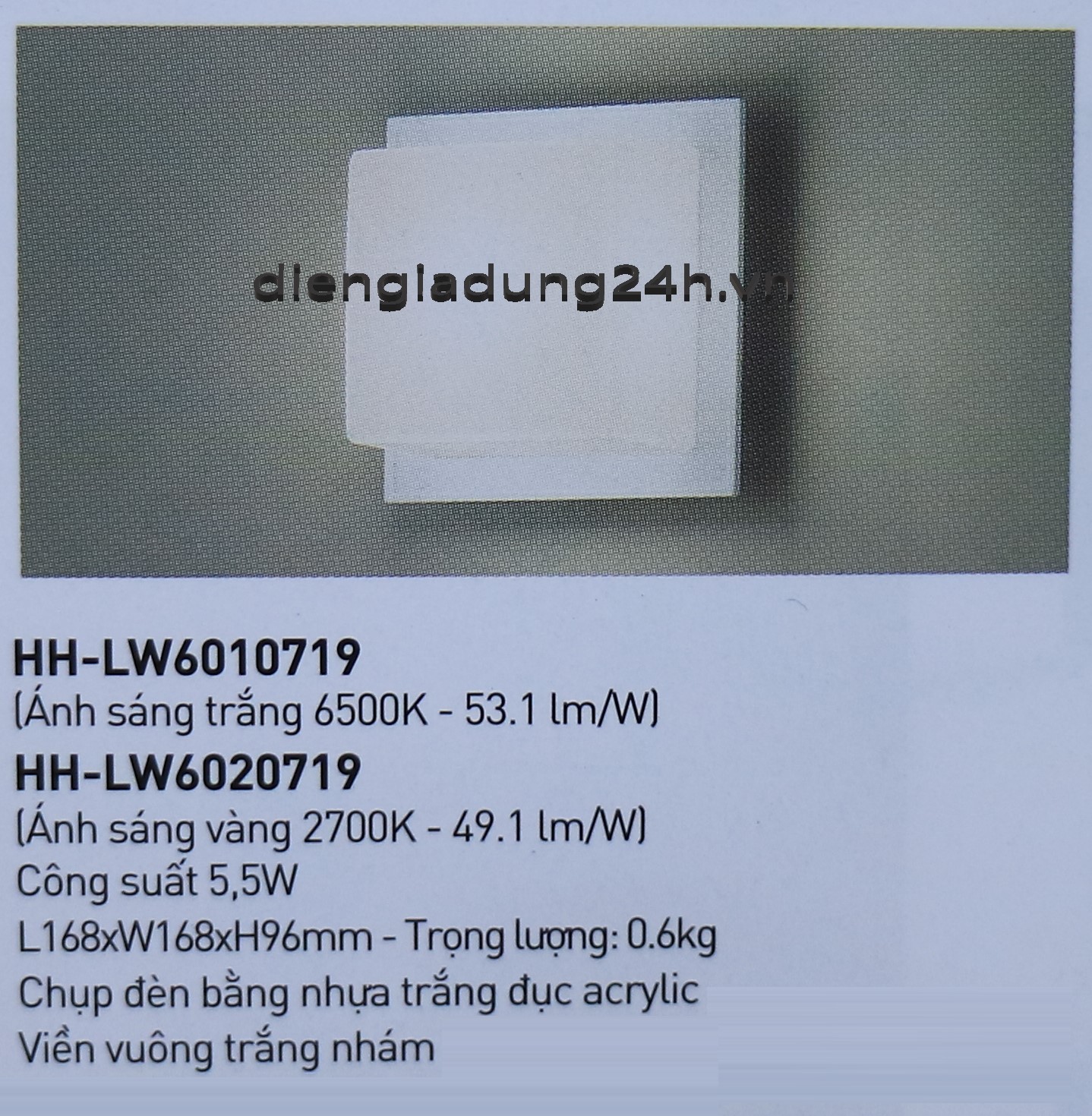 • Kết thúc : Vỏ acrylic (Trắng sữa), Khung màu trắng