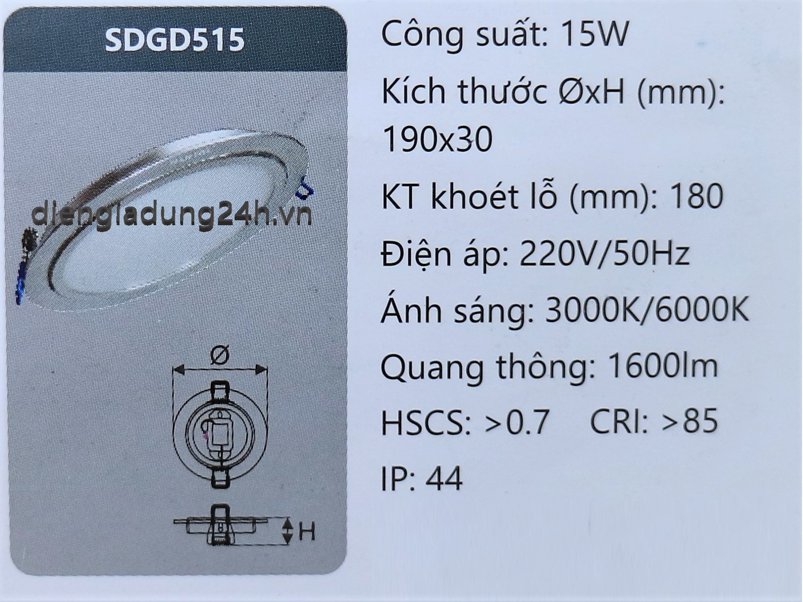 Thương hiệu: DUHAL | chiếu sáng, DUHAL, led downlight, led panel, SDGD515,
