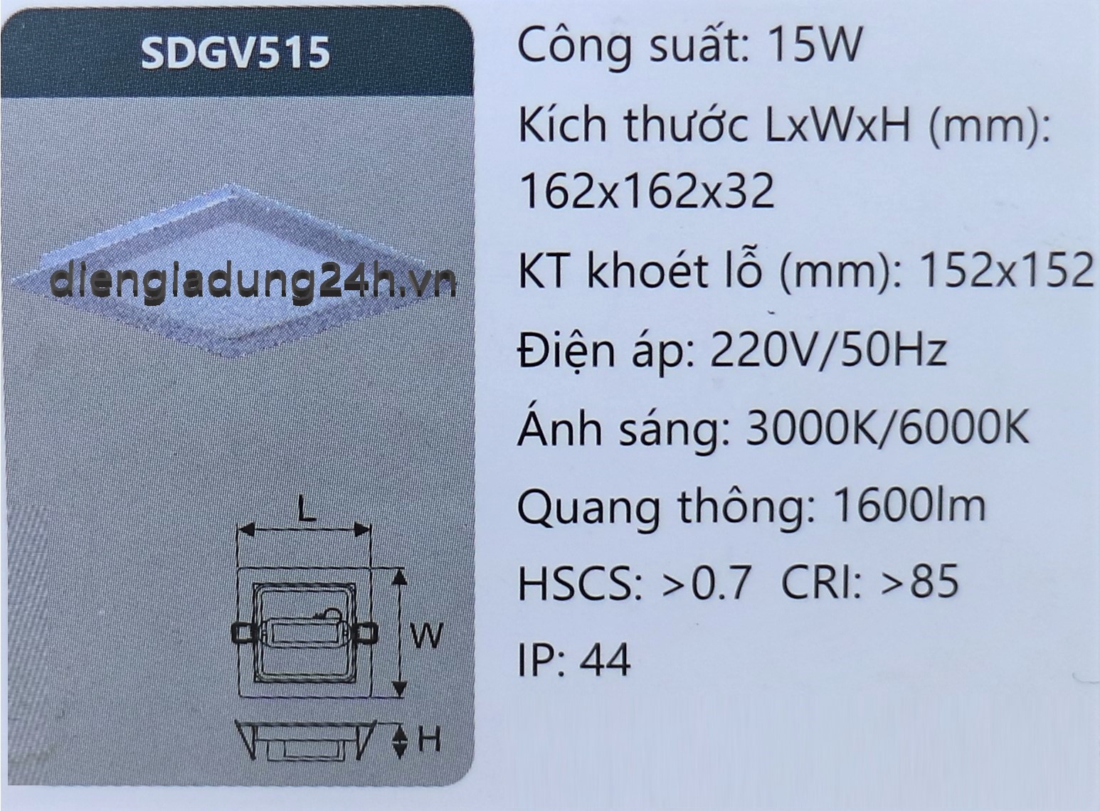 Thương hiệu: DUHAL | chiếu sáng, DUHAL, led downlight, led panel, SDGV515,
