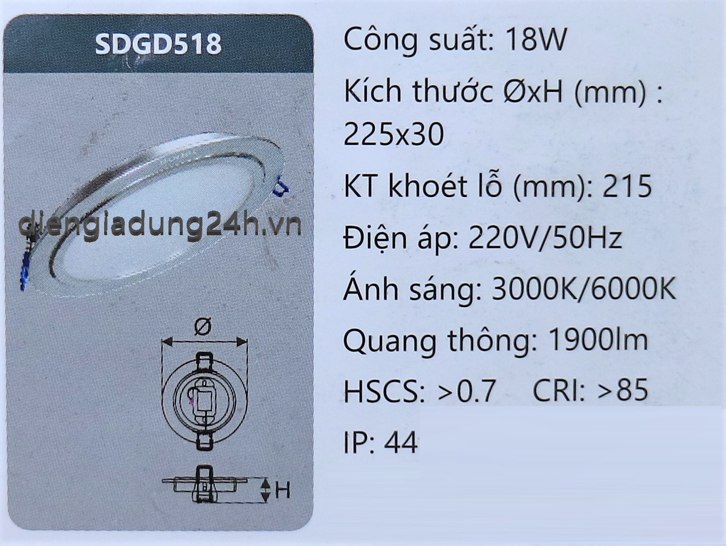 Thương hiệu: DUHAL | chiếu sáng, DUHAL, led downlight, led panel, SDGD518,