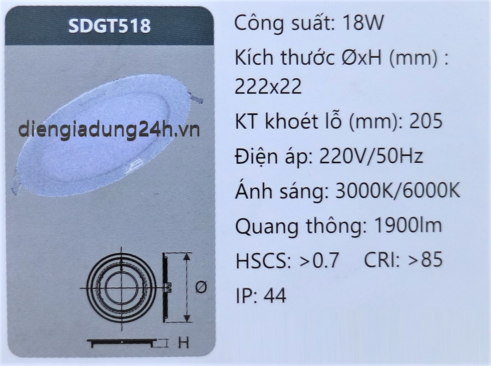 Thương hiệu: DUHAL | chiếu sáng, DUHAL, led downlight, led panel, SDGT518,