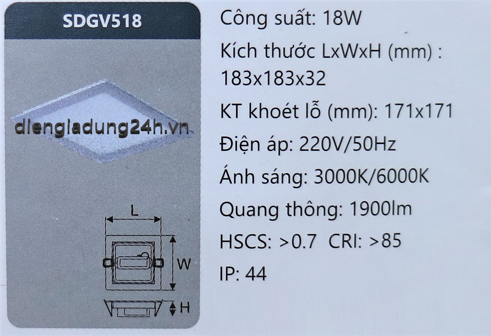 Thương hiệu: DUHAL | chiếu sáng, DUHAL, led downlight, led panel, SDGV518,