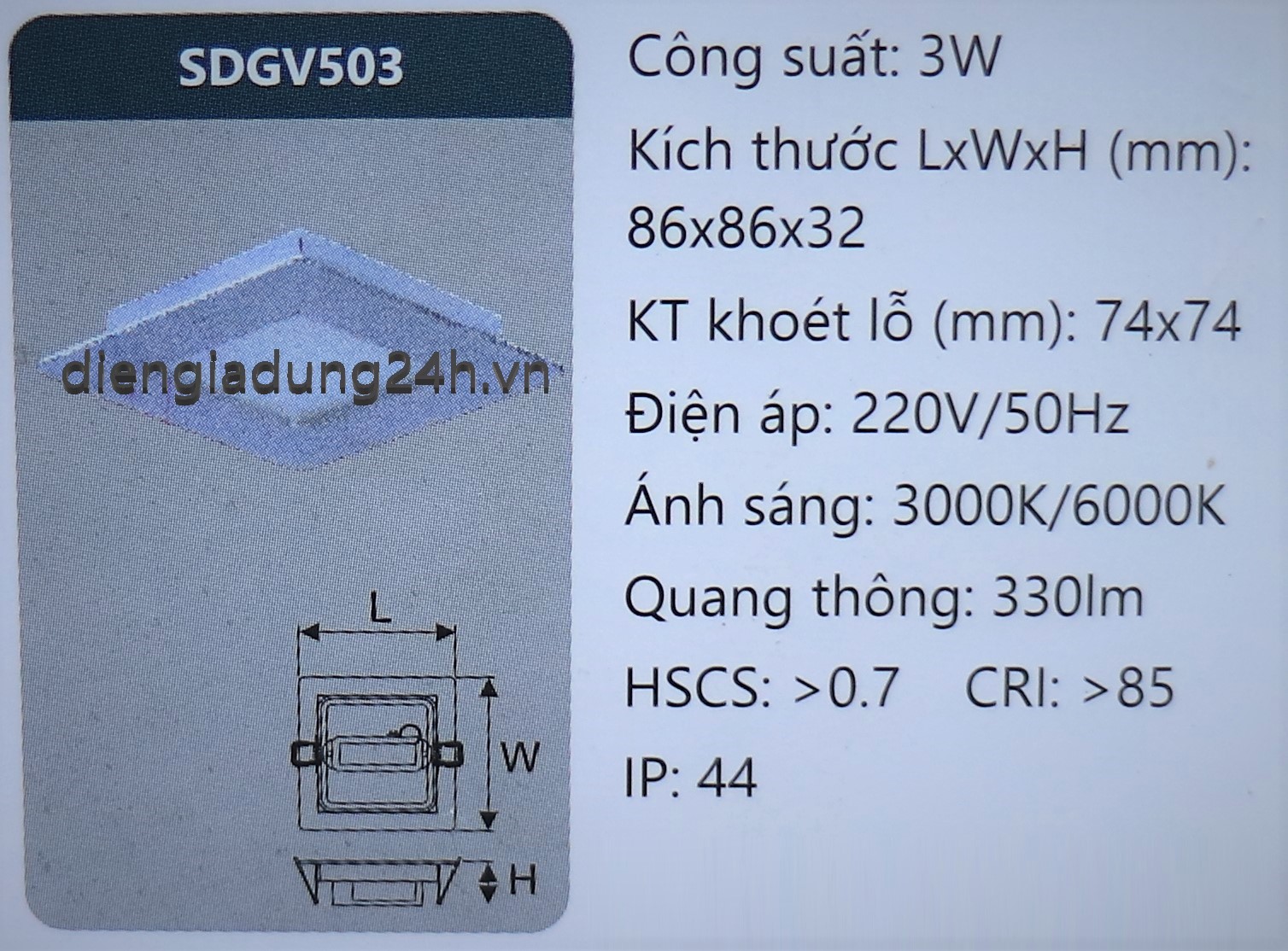 Thương hiệu: DUHAL | chiếu sáng, DUHAL, led downlight, led panel, SDGV503,