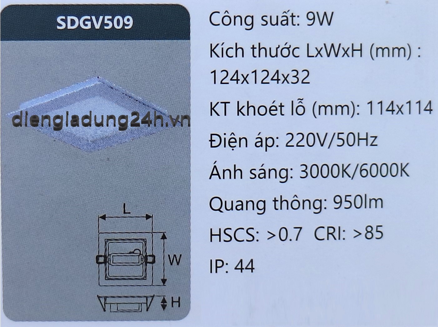 Thương hiệu: DUHAL | chiếu sáng, DUHAL, led downlight, led panel, SDGV509,