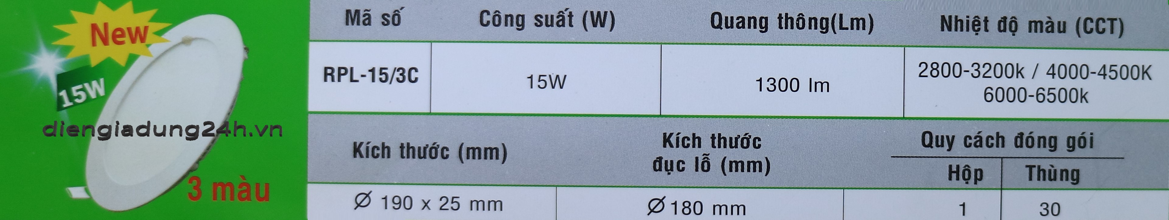 Thương hiệu: MPE | chiếu sáng, led downlight, led panel, MPE, RPL-15/3C,