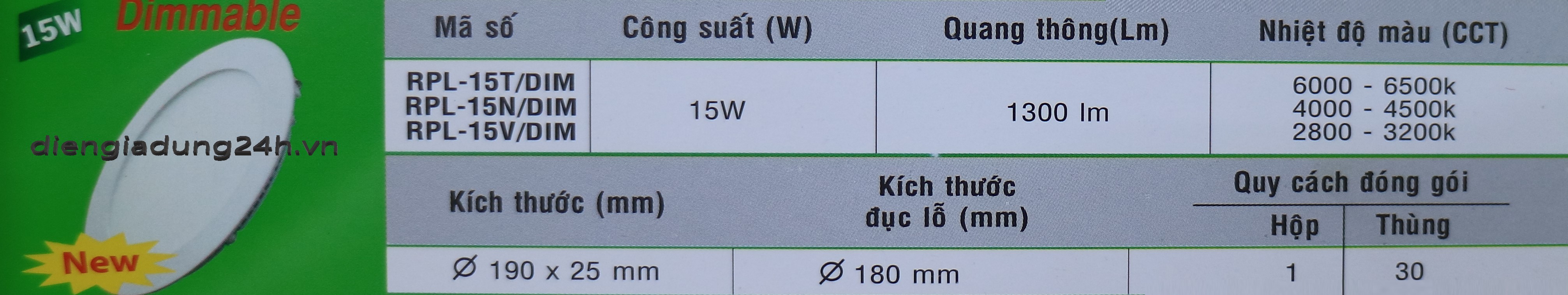 Thương hiệu: MPE | chiếu sáng, led downlight, led panel, mpe, RPL-15N/DIM, RPL-15T/DIM, RPL-15V/DIM,