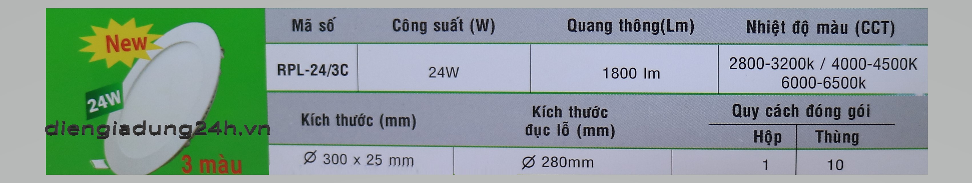 Thương hiệu: MPE | chiếu sáng, led downlight, led panel, MPE, RPL-24/3C,