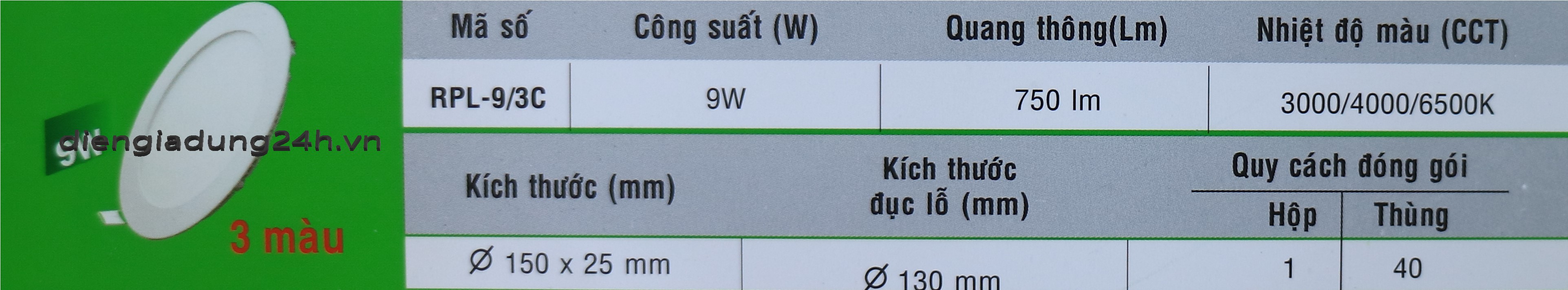 ĐÈN LED PANEL MPE RPL-9/3C 3 CHẾ ĐỘ