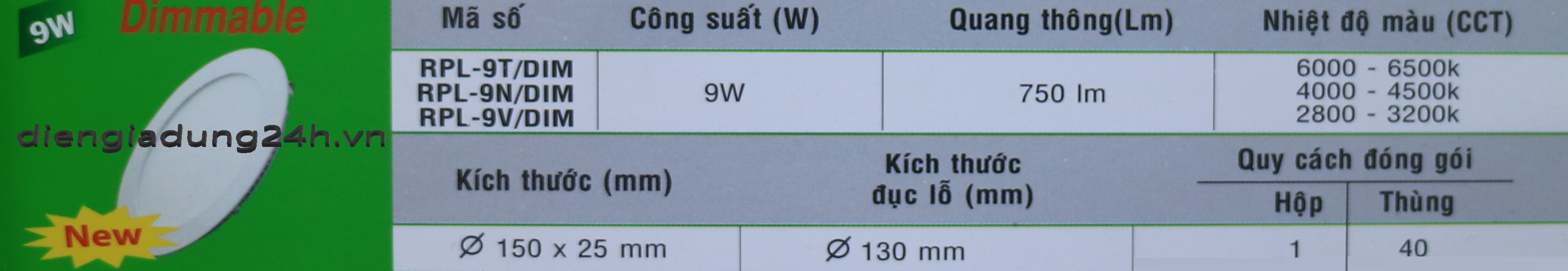 Thương hiệu: MPE | chiếu sáng, led downlight, led panel, mpe, RPL-9N/DIM, RPL-9T/DIM, RPL-9V/DIM,