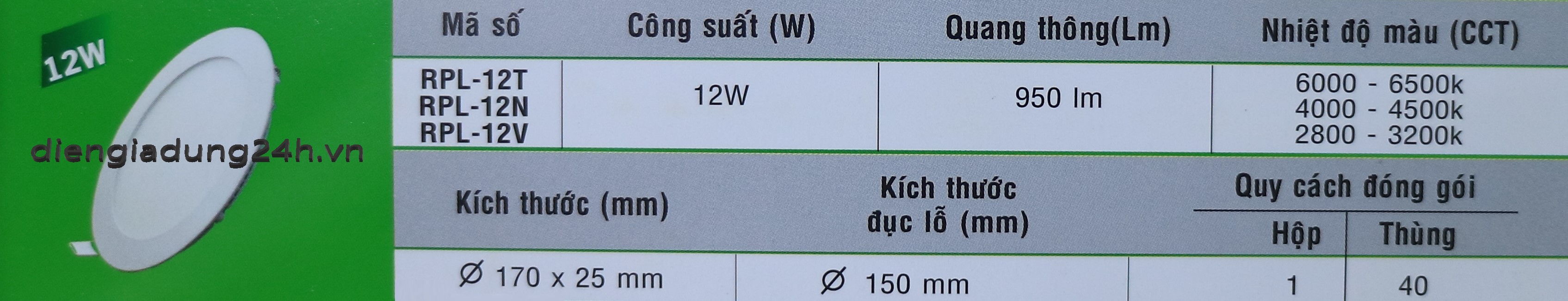 | Mã số | : | ĐÈN LED PANEL MPE TRÒN ÂM RPL-12T / RPL-12N / RPL-12V |