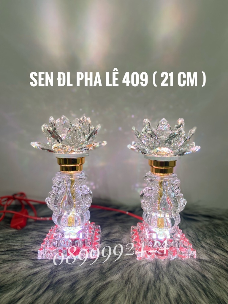 Đèn sen ĐL 1 BÔNG PL 409 ( 21cm ) Phần thân cũng được làm bằng pha lê đúc nguyên khối làm cho sản phẩm trở nên đẹp và trang trọng .