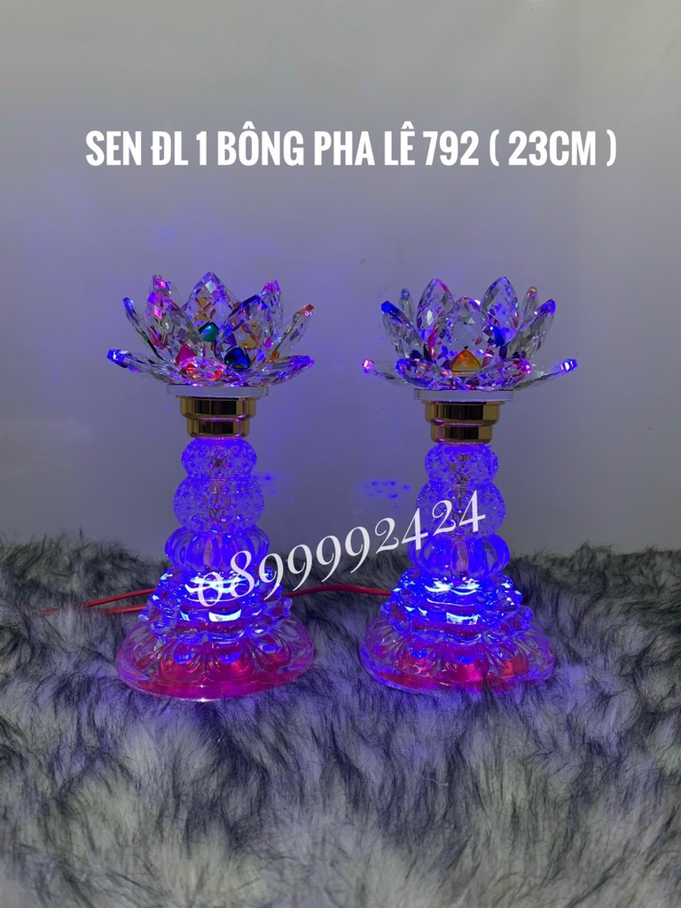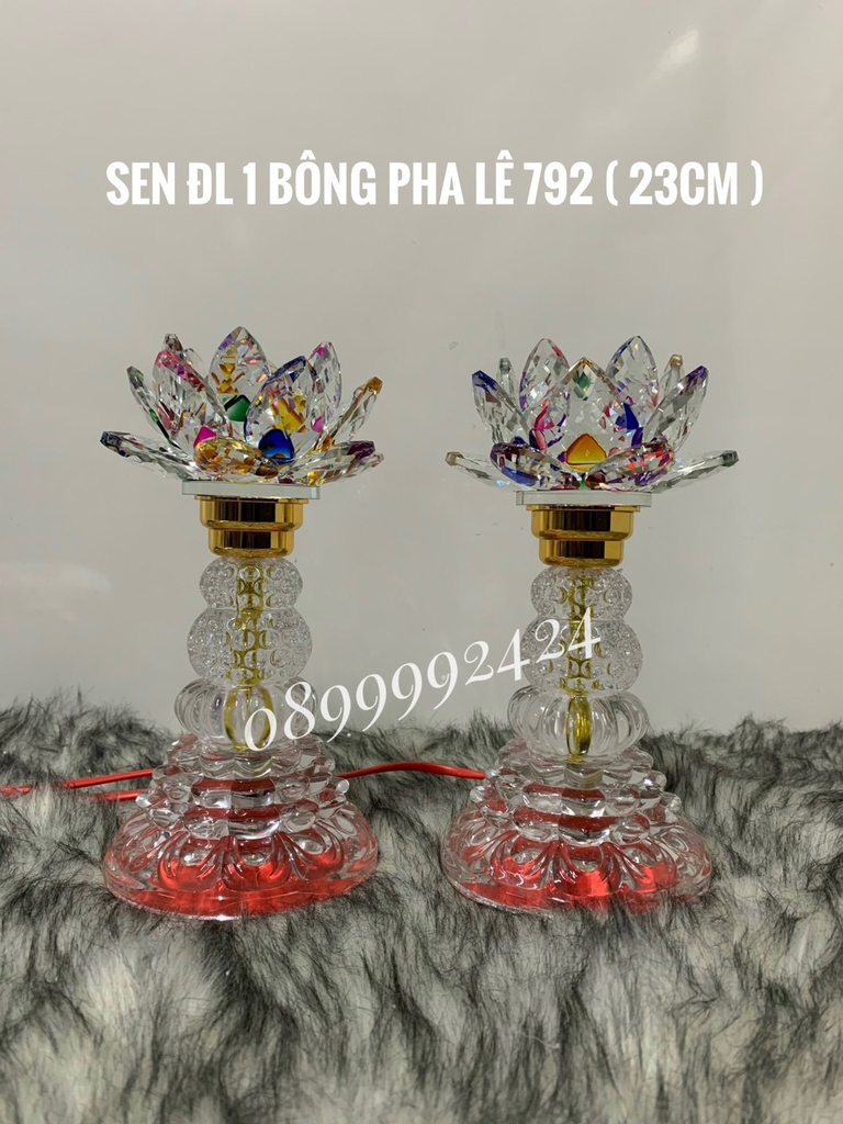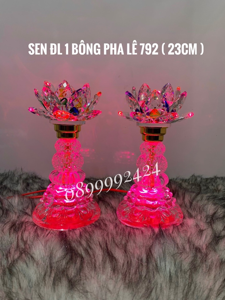 Đèn sen ĐL 1 BÔNG PL 792 ( 23cm ) Phần thân cũng được làm bằng pha lê đúc nguyên khối làm cho sản phẩm trở nên đẹp và trang trọng .