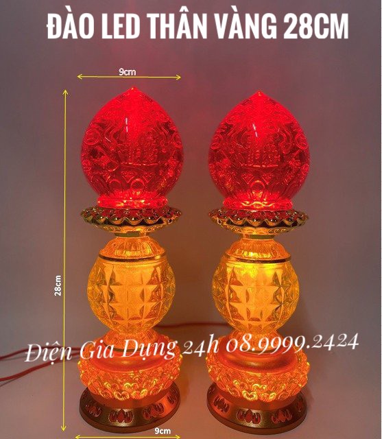 Thương hiệu: Chưa cập nhật | Đèn thờ cúng Đào led siêu sáng thân thủy tinh - quả Đào nhựa GIÁ BÁN 1 CẶP,