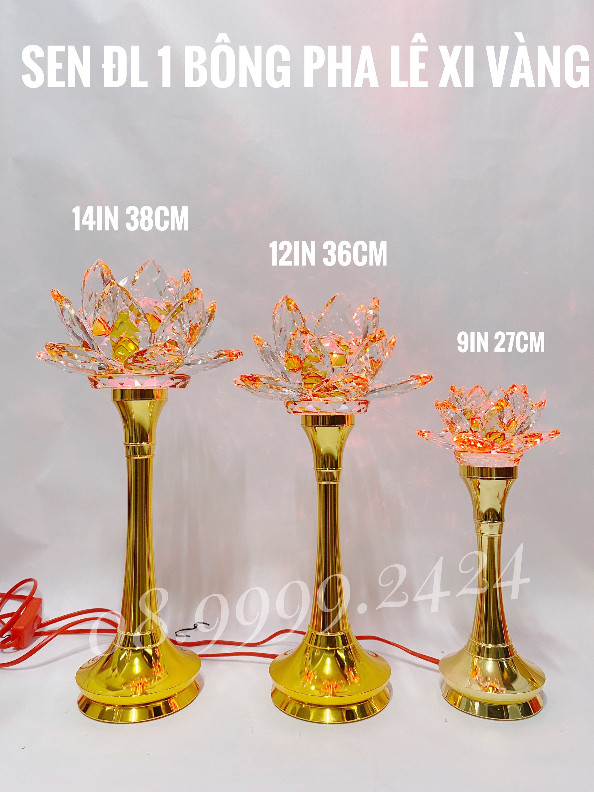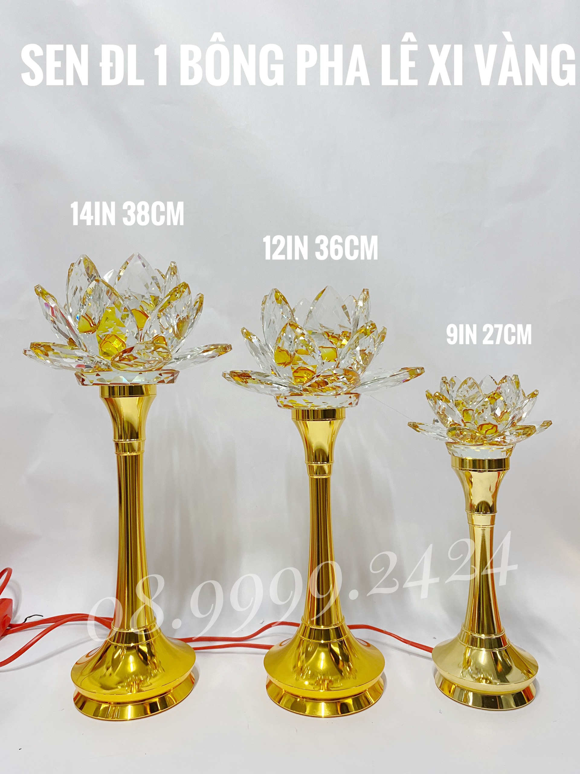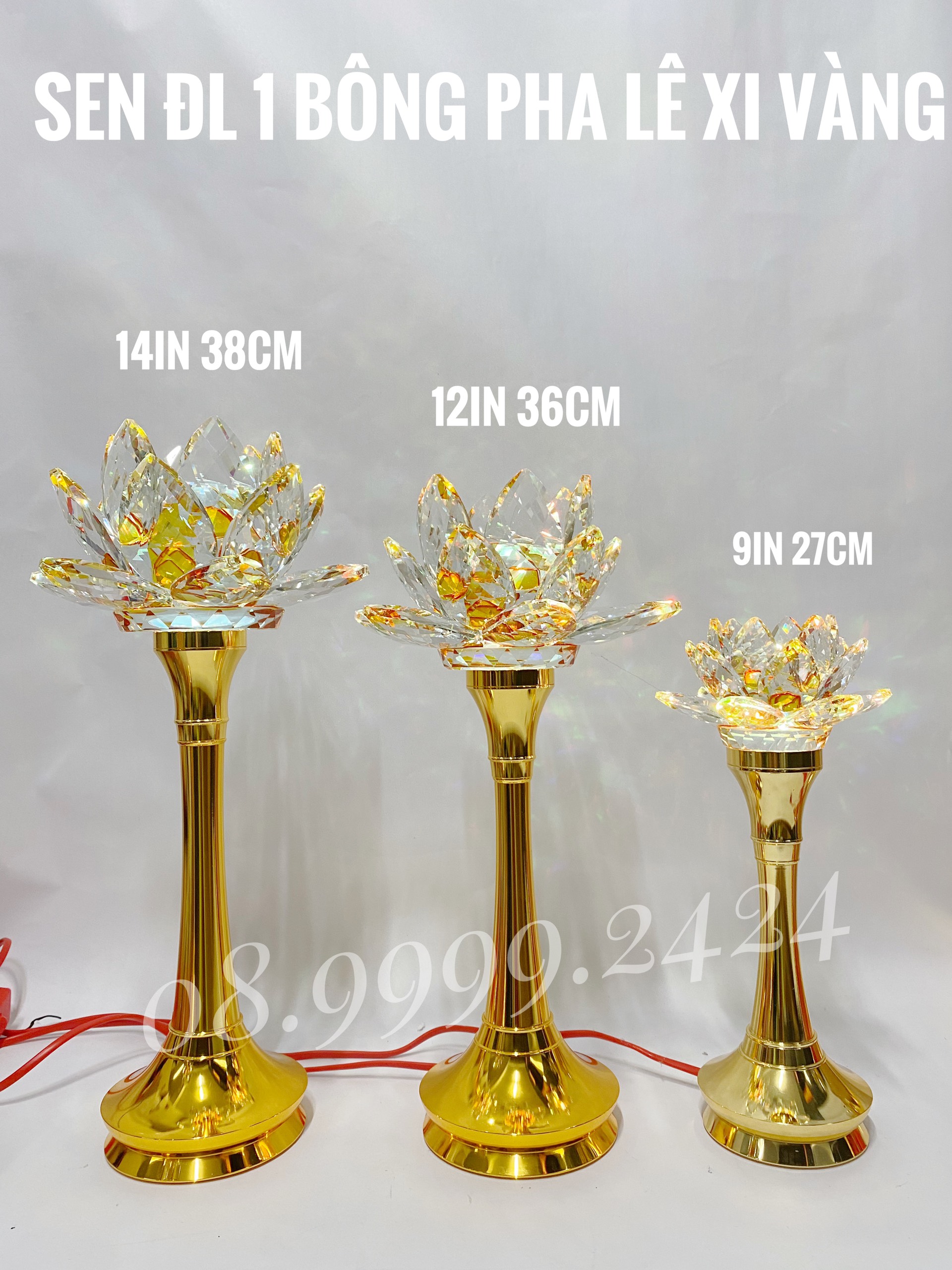 ĐÈN THỜ PHA LÊ 14 IN XI VÀNG (38CM) GIÁ BÁN 1 CẶP