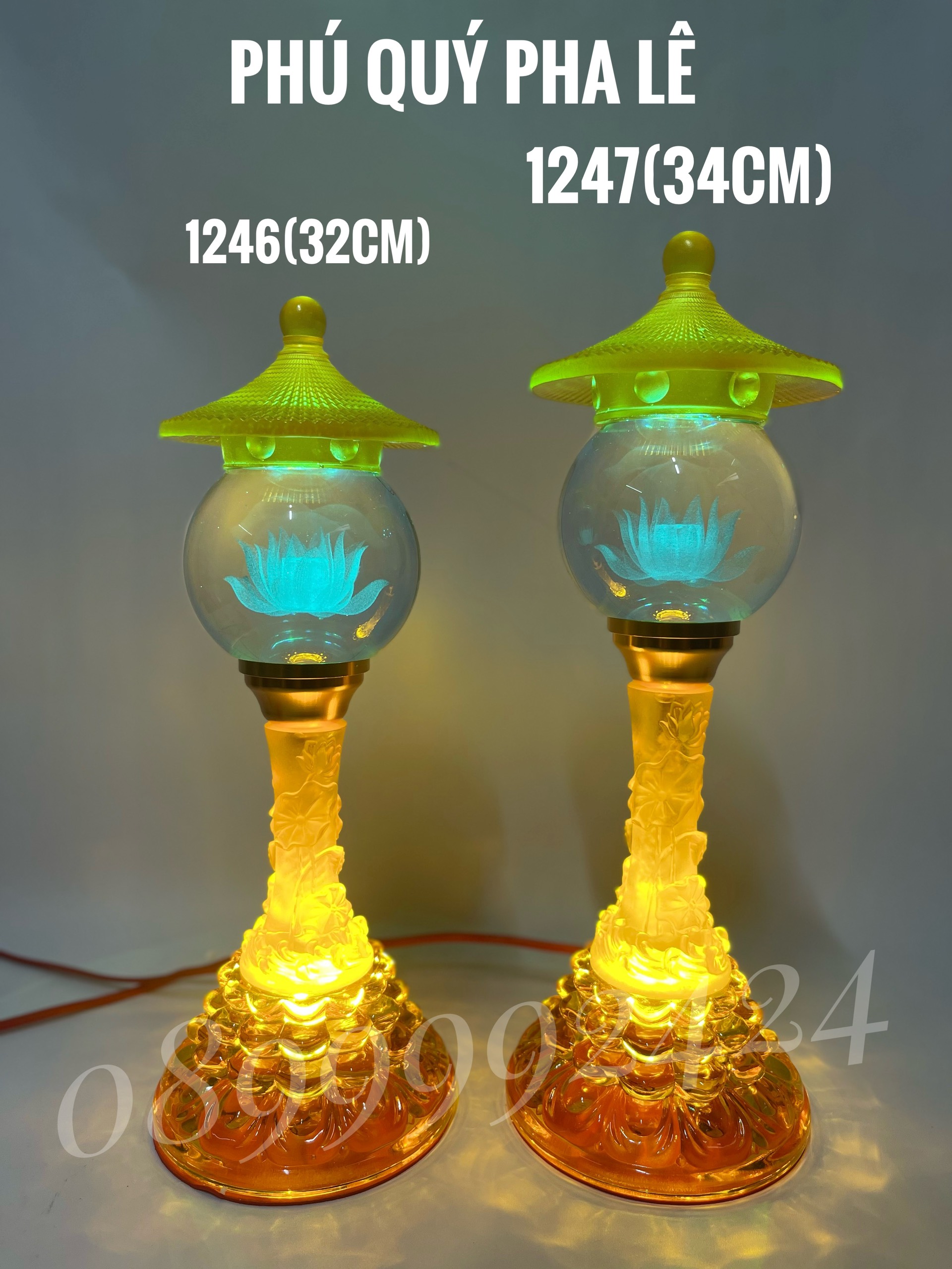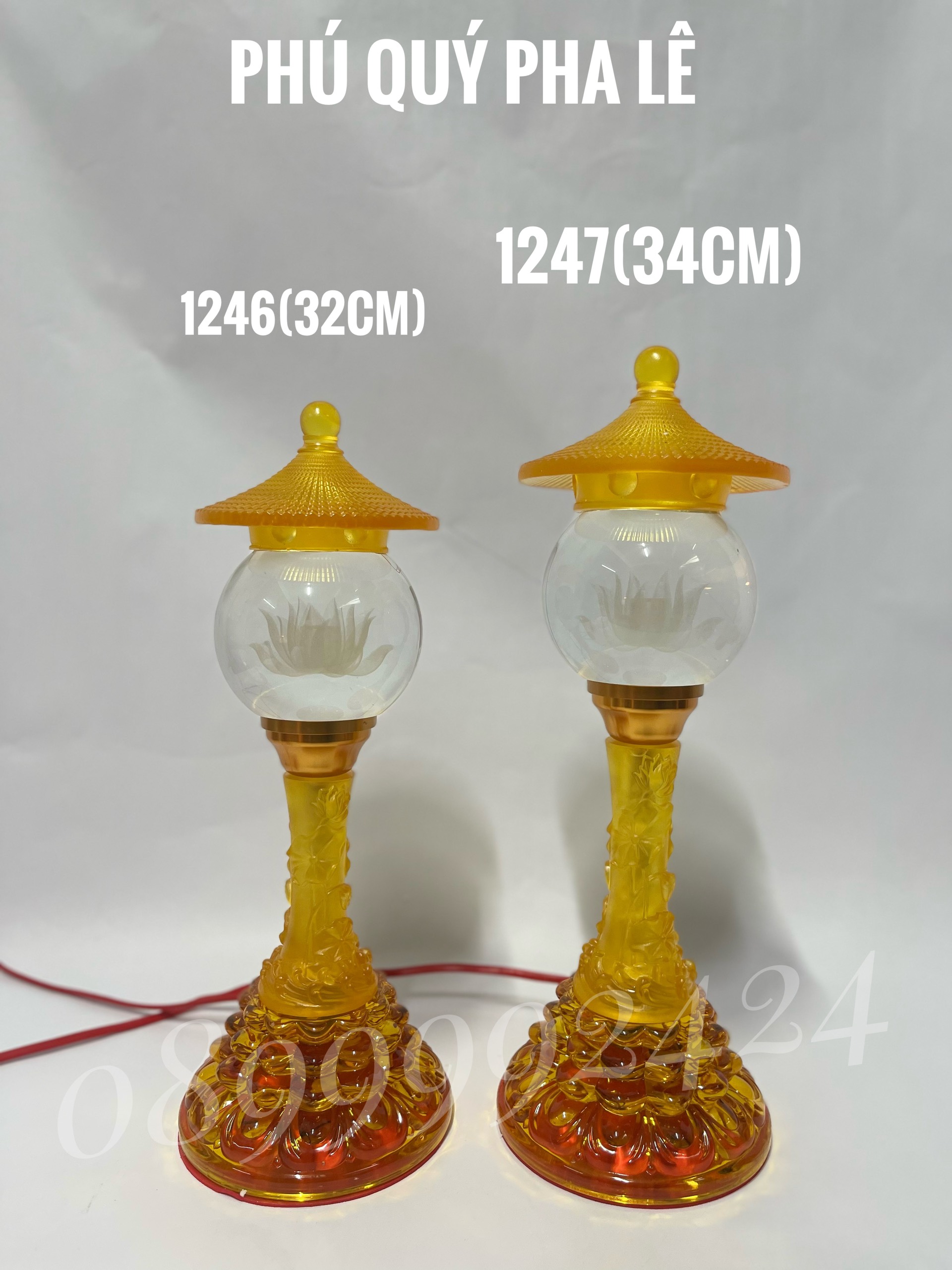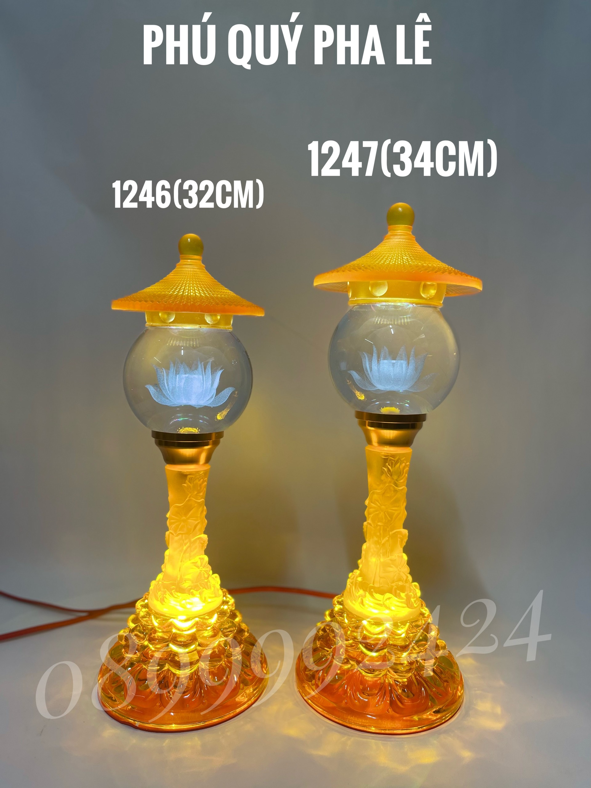 ĐÈN THỜ PHÚ QUÝ PHA LÊ - LƯU LY 1246 32CM GIÁ BÁN 1 CẶP