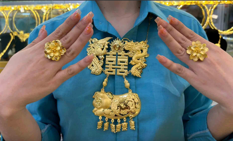 Theo chị Đặng Diễm, đại diện Công ty TNHH trang sức Kim Lộc Phát, TP.HCM, dịch vụ cho thuê vàng cưới đã trở thành xu hướng trong thời gian gần đây. Công ty chị cho thuê khoảng 10 bộ trang sức mỗi tháng với giá thuê dao động từ 1,68 - 1,99 triệu đồng/ngày, tùy thuộc vào bộ trang sức khách chọn gồm kiềng, vòng tay, bông tai, nhẫn… Khách cần cọc 8 triệu đồng và để lại căn cước công dân.