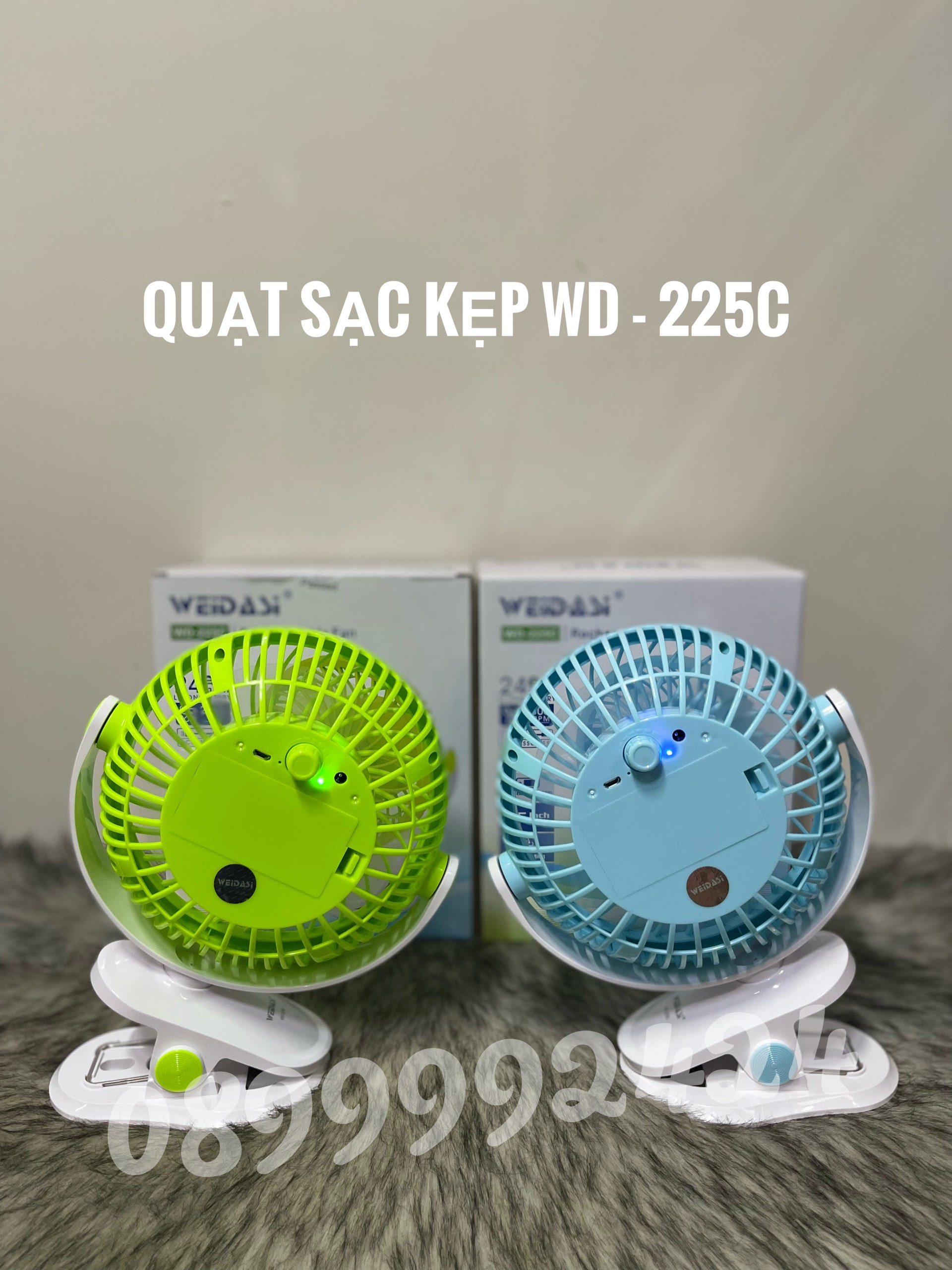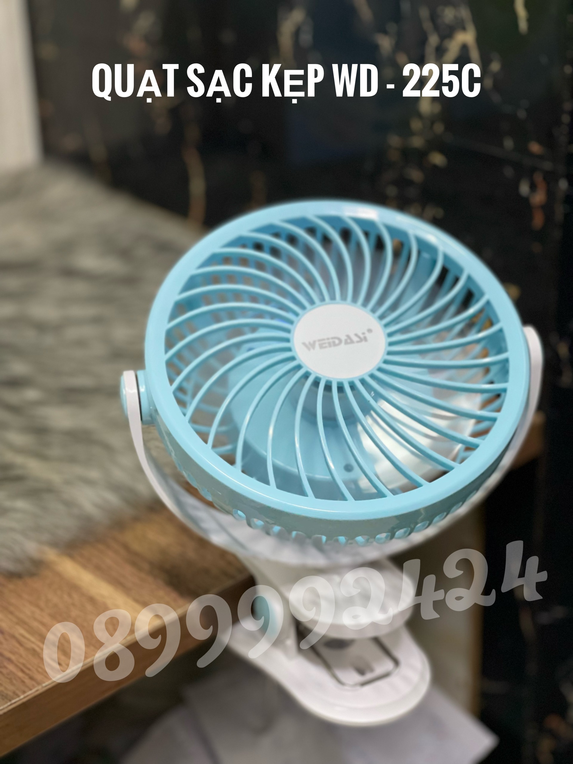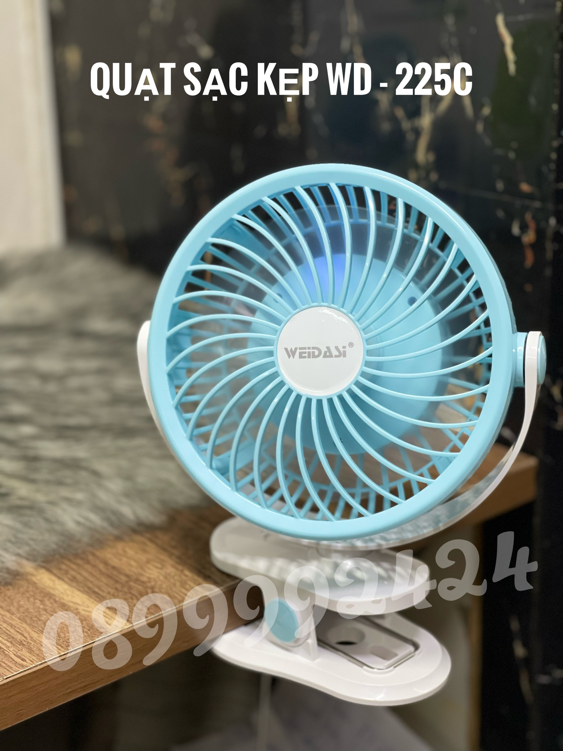 Thương hiệu: Trung Quốc | QUẠT SẠC KẸP ĐIỀU CHỈNH DIMMER, QUẠT SẠC TÍCH ĐIỆN ĐỂ BÀN-KẸP WEIDASI WD-225C,