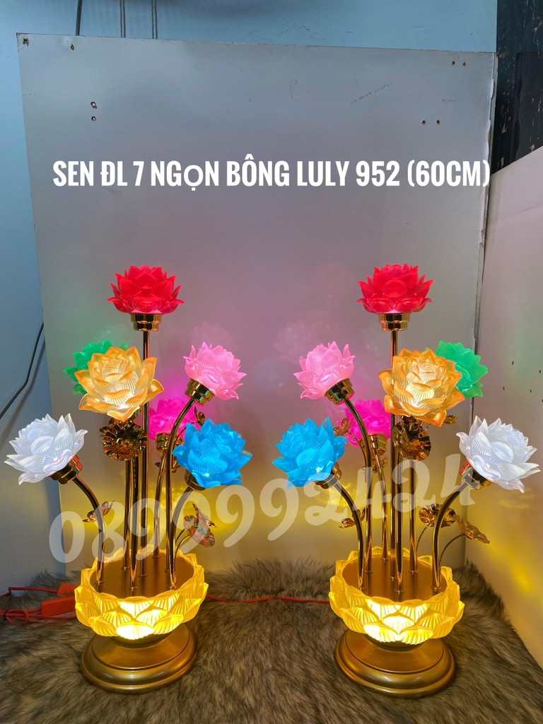 Thương hiệu: Đài Loan | den tho, Sen ĐL 7 NGỌN BÔNG PL 952 ( 60CM ), đèn thờ,